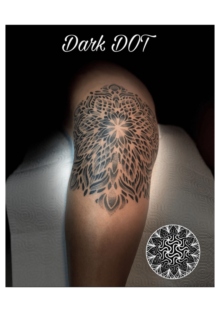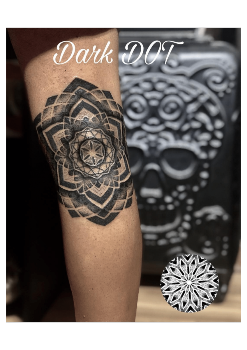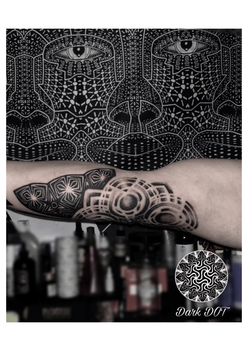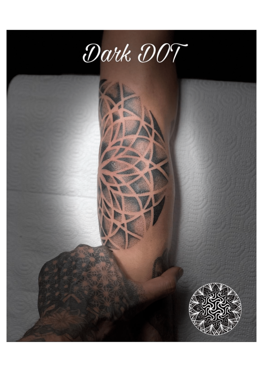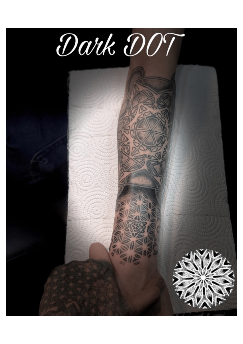I had to learn a lot from computers to create more complex patterns and geometric shapes than by doing by hand. Ever since I can remember, I have always been interested in creating things and drawing. I have never been good with observational drawing, so I started at an early age to create geometric shapes and patterns on grid paper. When it comes to tattooing, the choice of doing Dotwork came naturally. I already knew I wanted to work with geometry, I simply picked the best technique that would allow me to do it onto the skin.