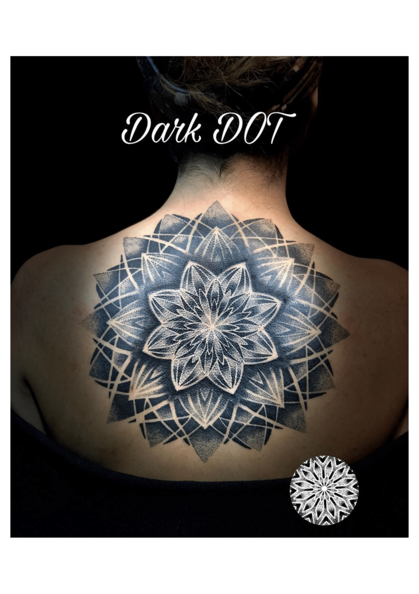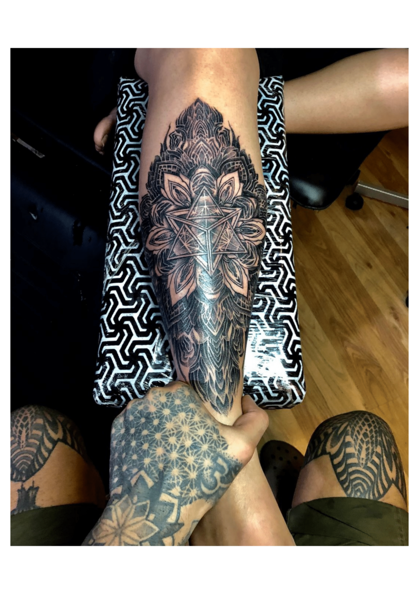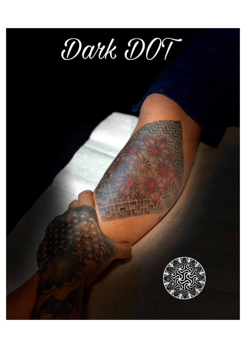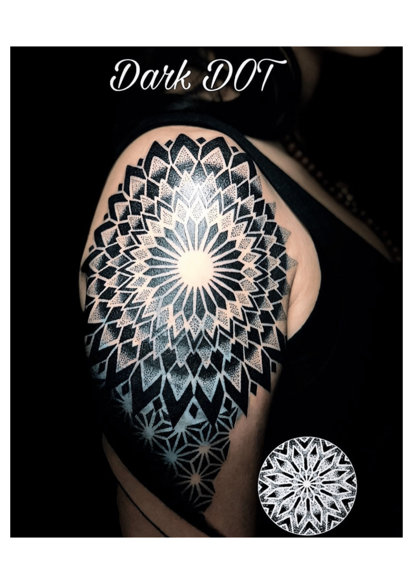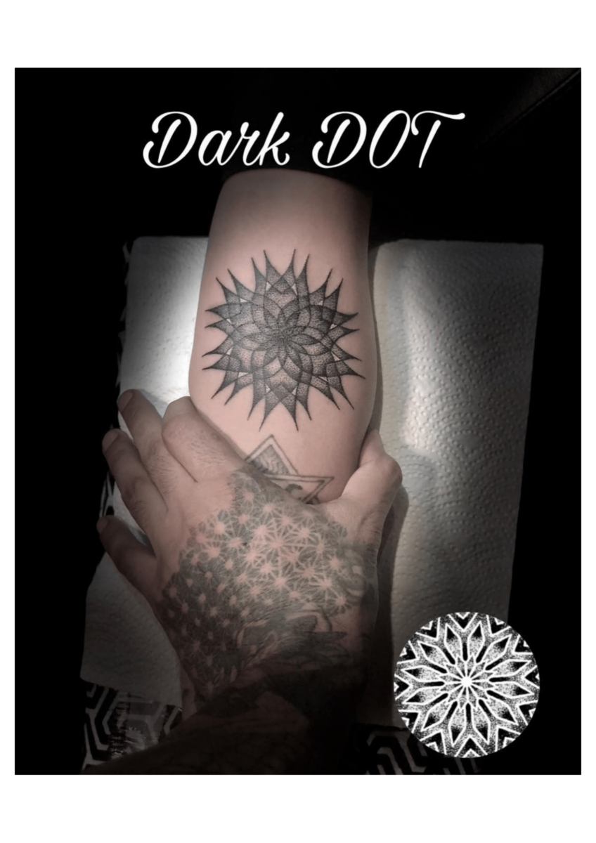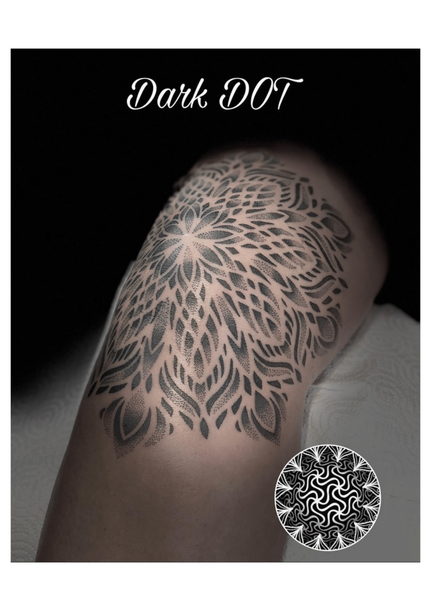 I had to learn a lot from computers to create more complex patterns and geometric shapes than by doing by hand. Ever since I can remember, I have always been interested in creating things and drawing. I have never been good with observational drawing, so I started at an early age to create geometric shapes and patterns on grid paper. When it comes to tattooing, the choice of doing Dotwork came naturally. I already knew I wanted to work with geometry, I simply picked the best technique that would allow me to do it onto the skin.