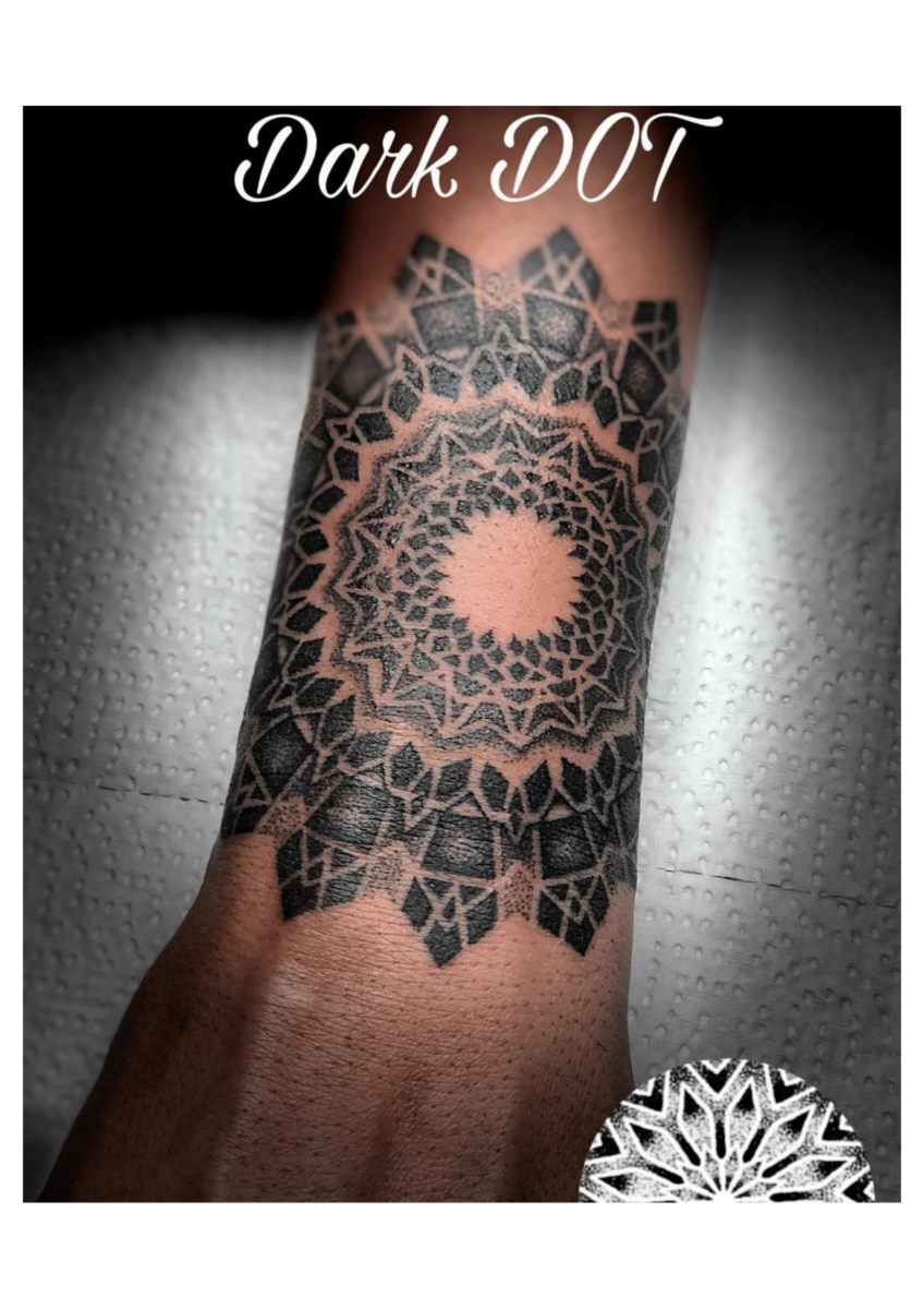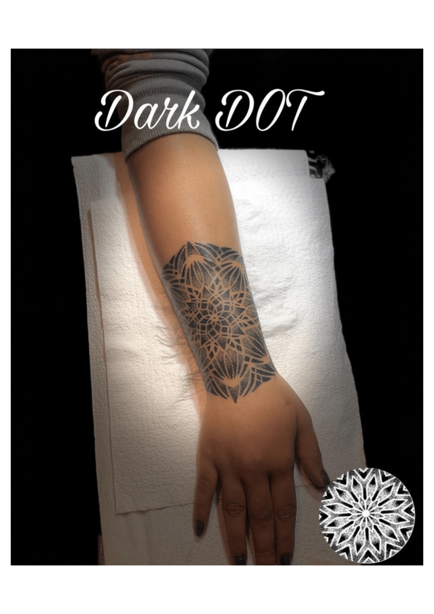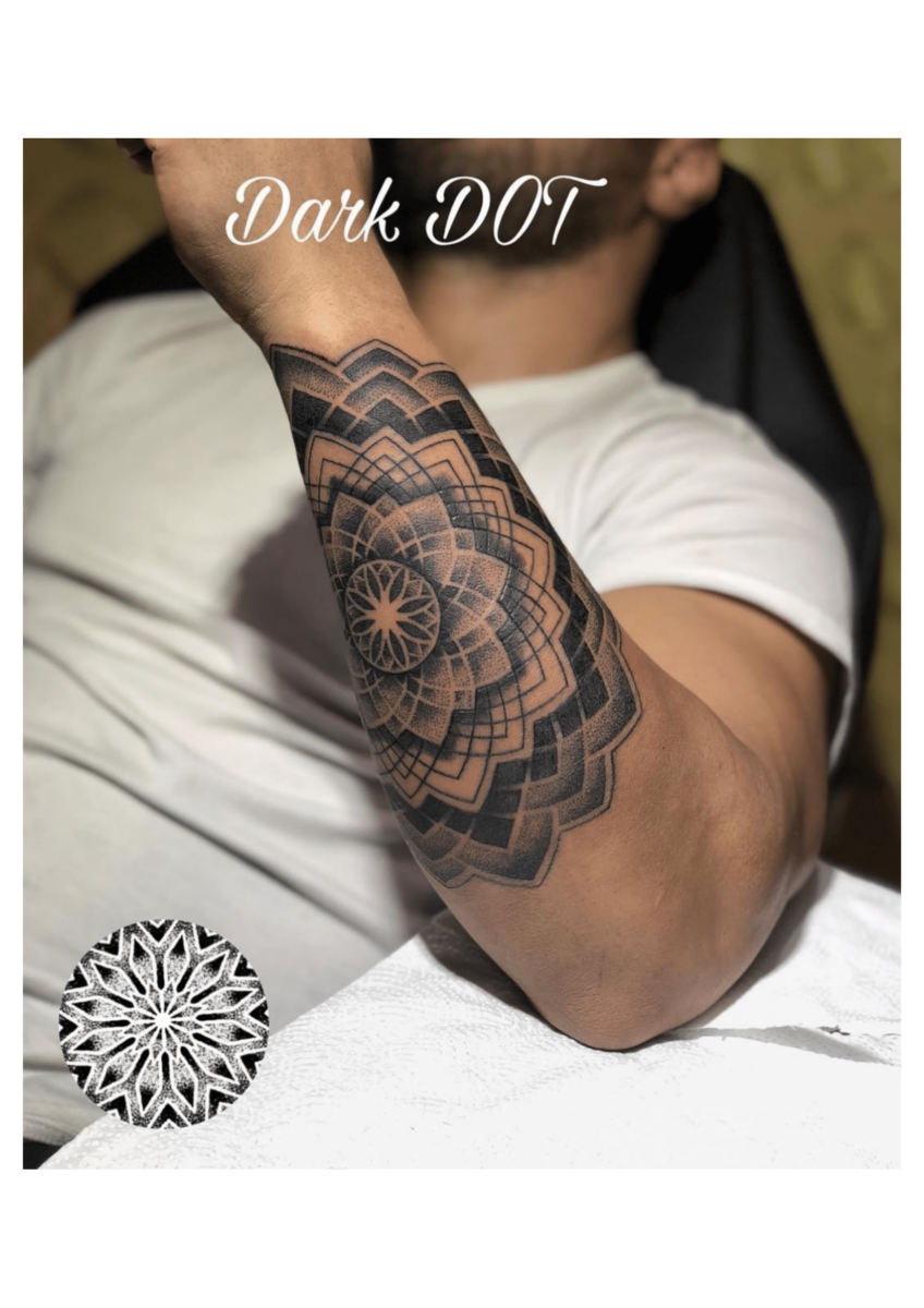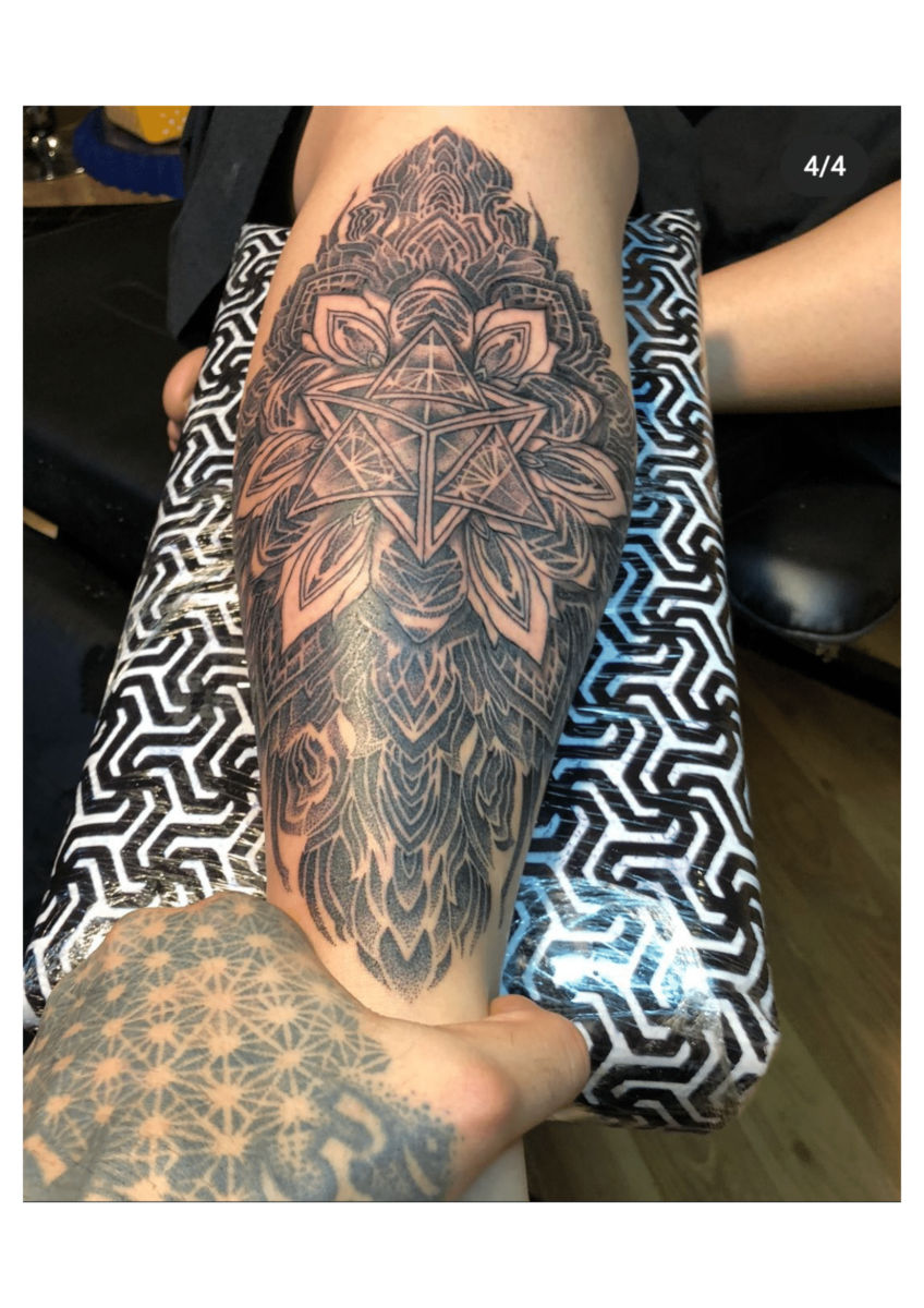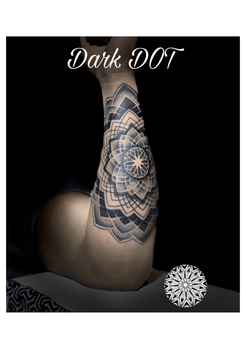 I had to learn a lot from computers to create more complex patterns and geometric shapes than by doing by hand. Ever since I can remember, I have always been interested in creating things and drawing. I have never been good with observational drawing, so I started at an early age to create geometric shapes and patterns on grid paper. When it comes to tattooing, the choice of doing Dotwork came naturally. I already knew I wanted to work with geometry, I simply picked the best technique that would allow me to do it onto the skin.