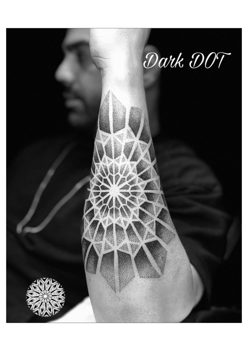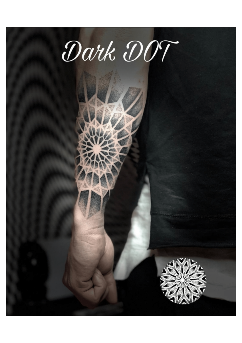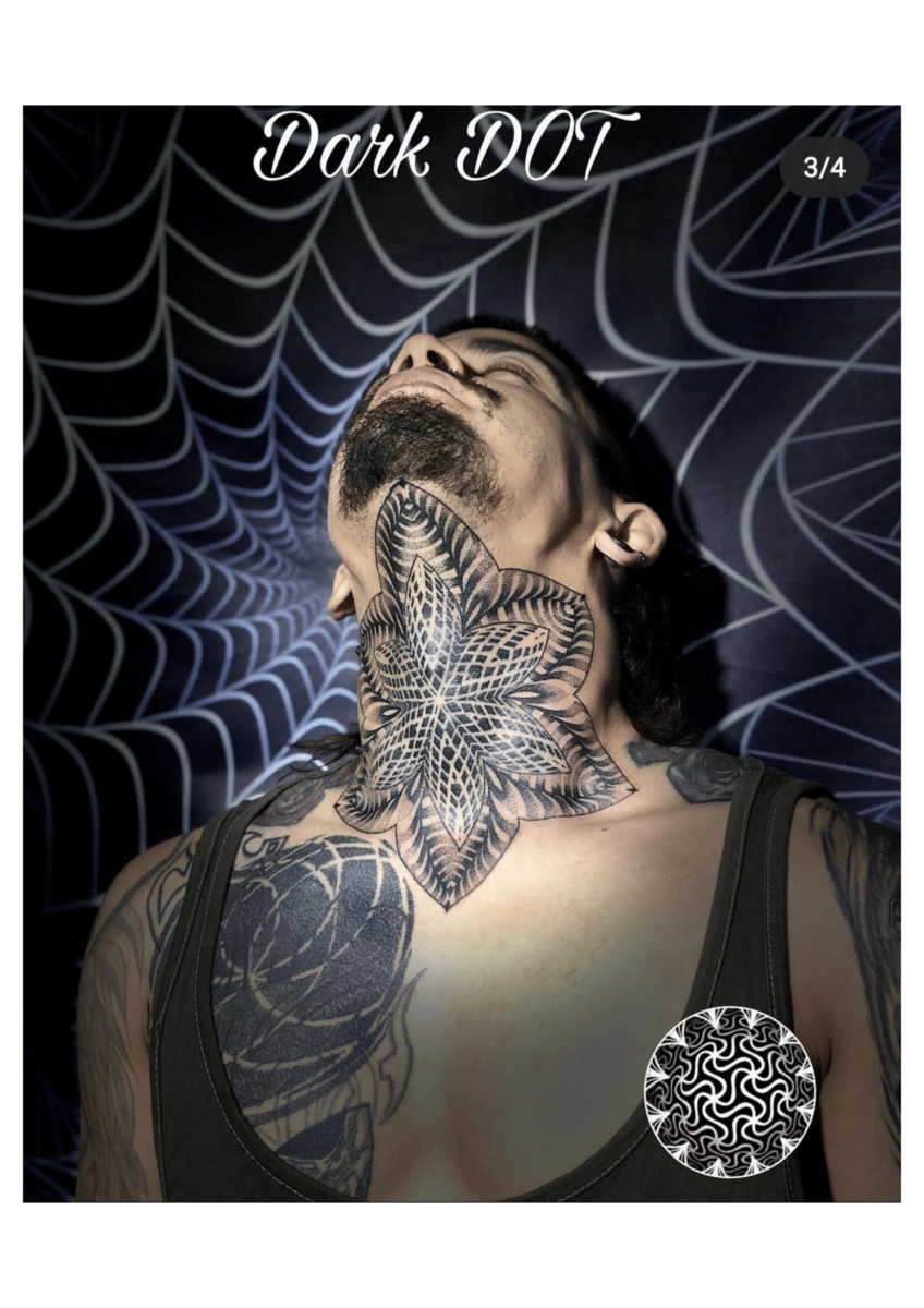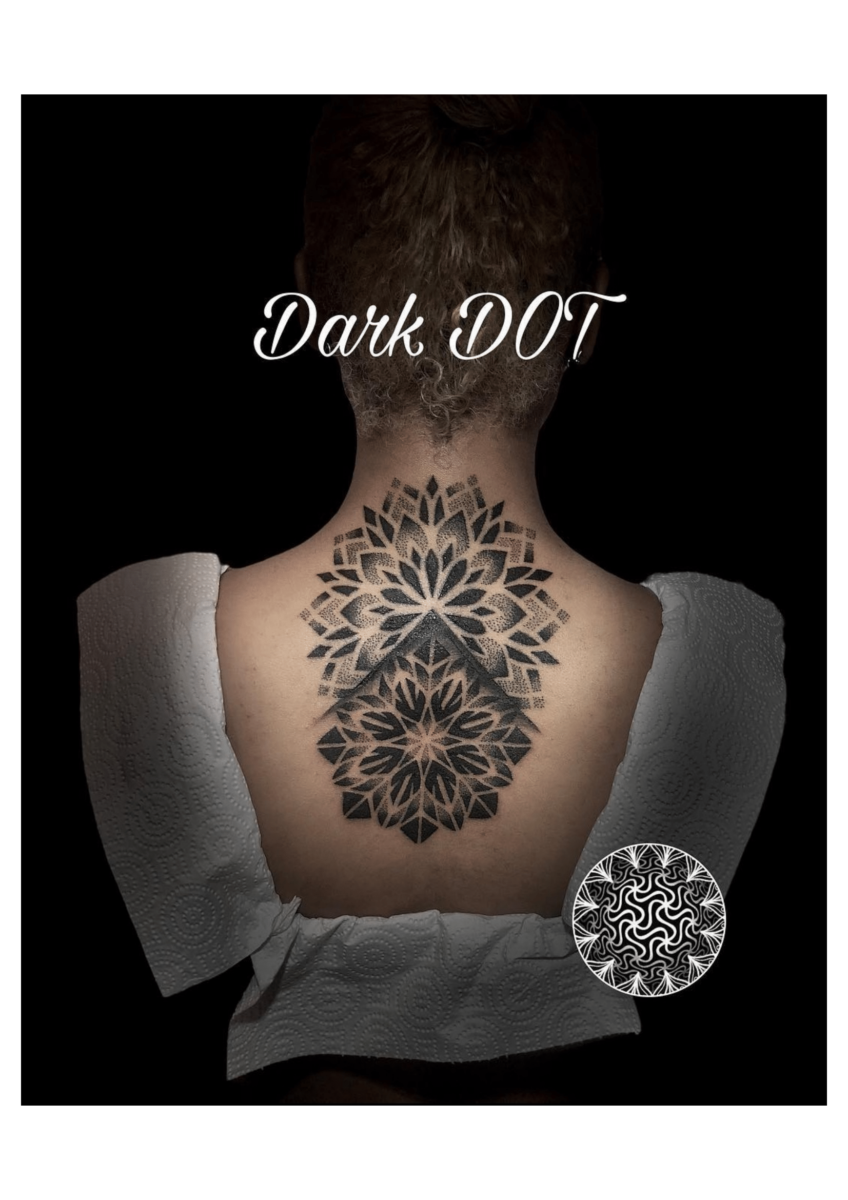 When it comes to geometry, dots generally age better, and I like the texture the most. What interests me the most in tattooing is to use the body as a single canvas and work on its entire surface.