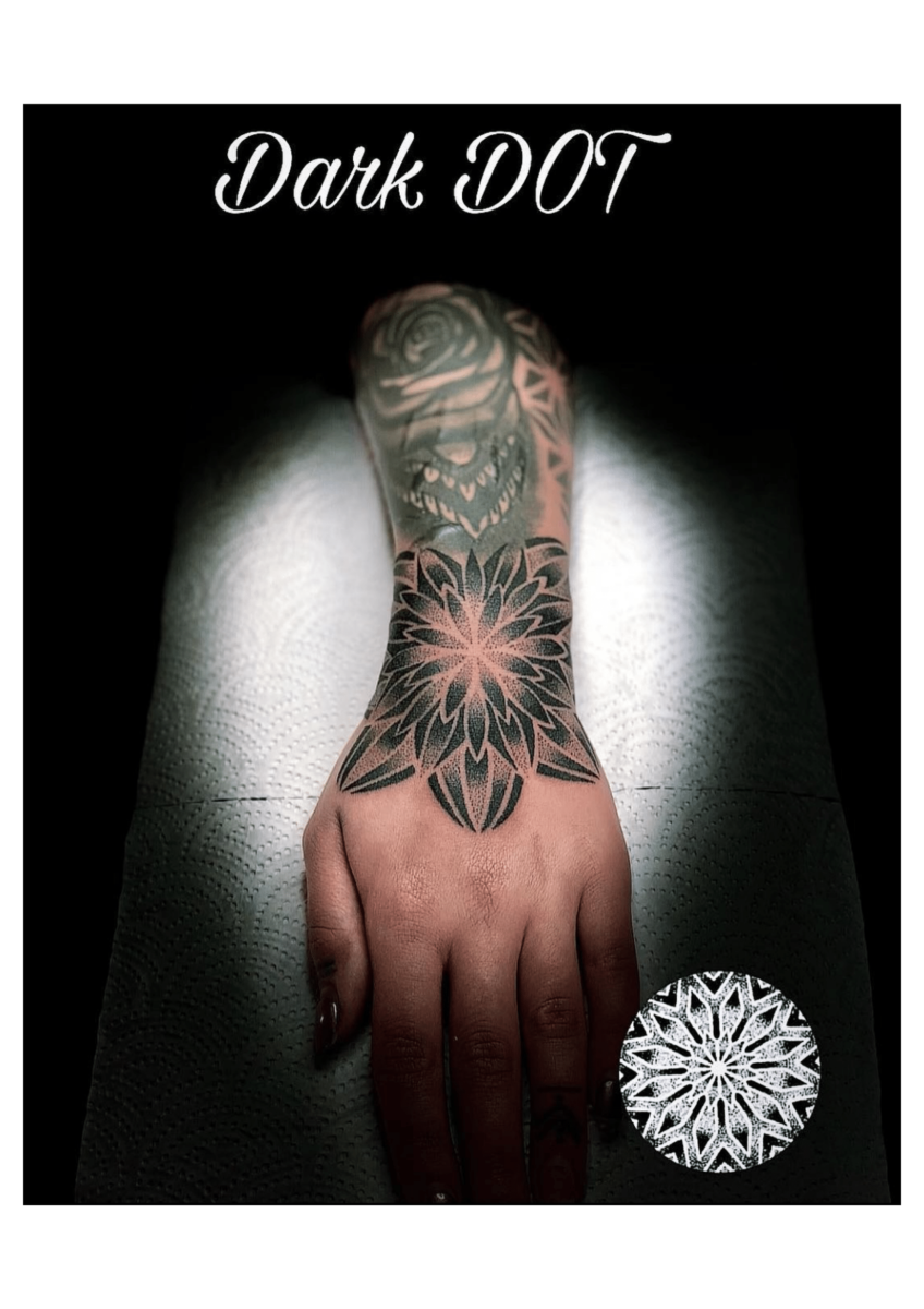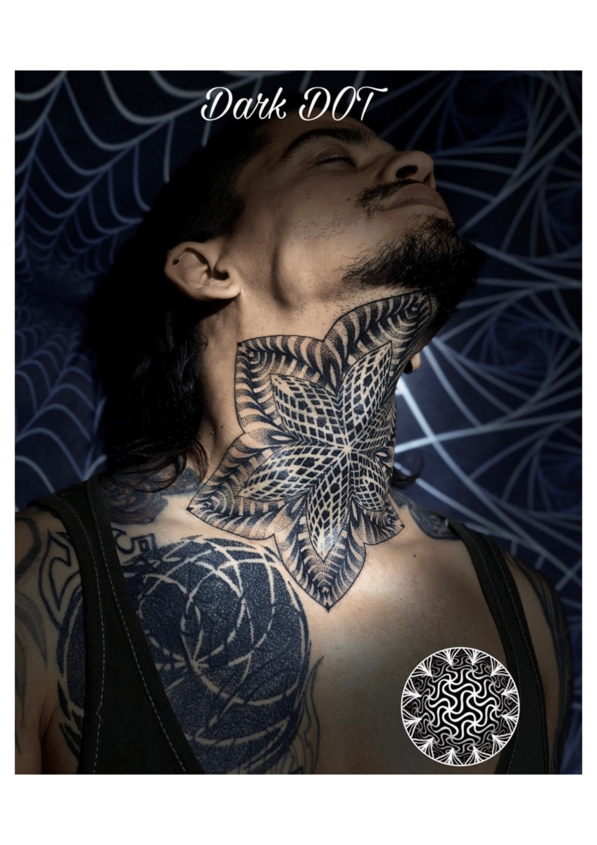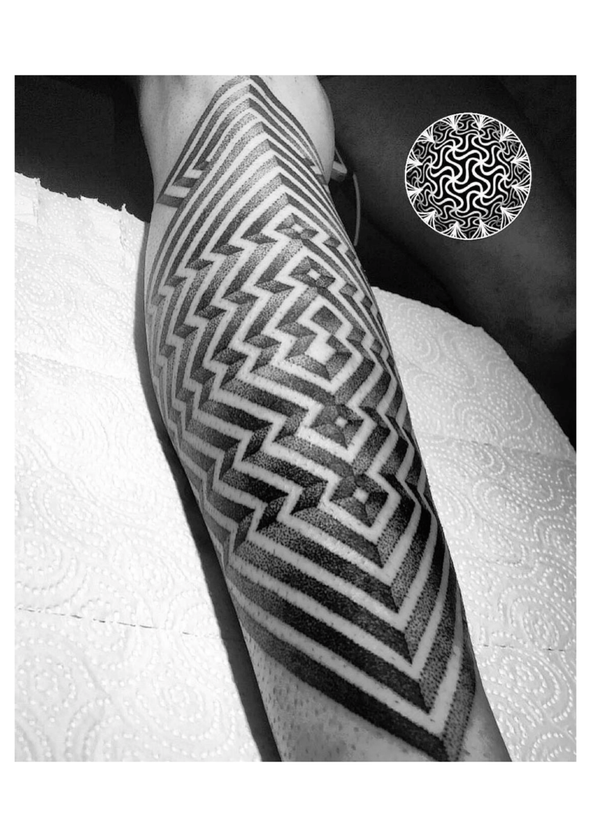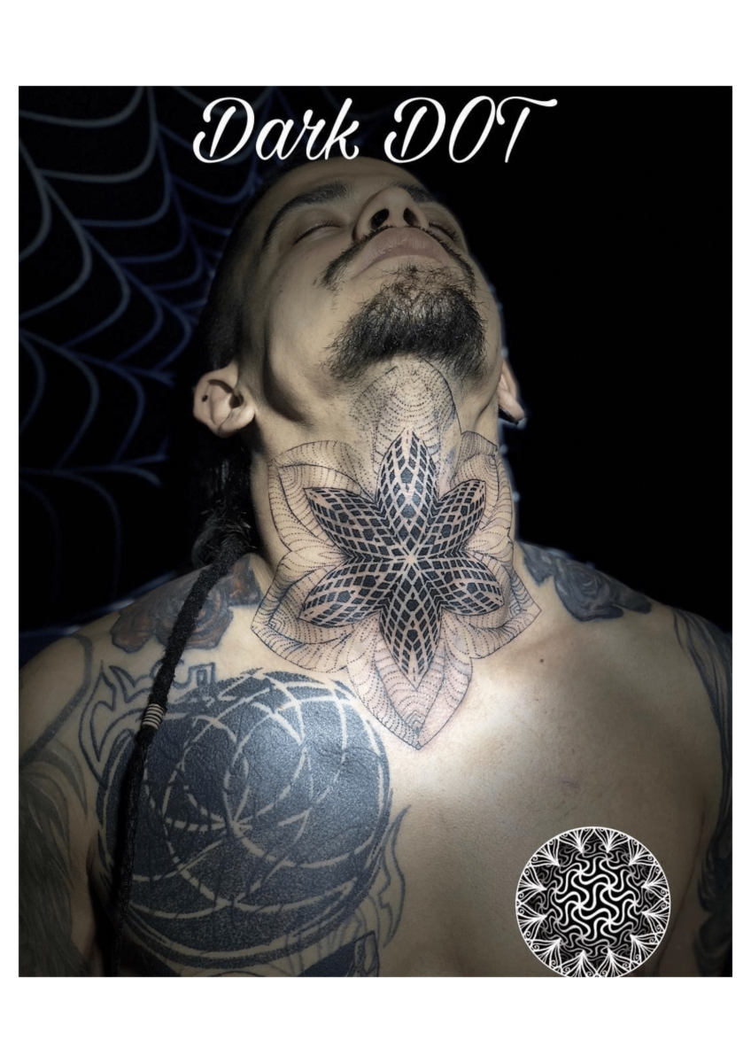 When it comes to geometry, dots generally age better, and I like the texture the most. What interests me the most in tattooing is to use the body as a single canvas and work on its entire surface.